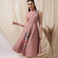 Anarkali- Hand-Painted pink pleated floral midi dress with pockets