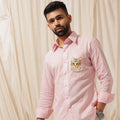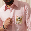 This summery pink shirt features a cute little Hand-Painted Kitten on the Pocket, making it a vacation must have.