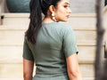 • Handwash garment in cold water with mild detergent after ten days of receiving.