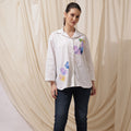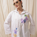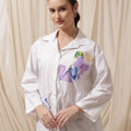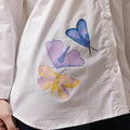 This oversized shirt boasts vibrant, hand-painted butterflies, adding a unique, artistic touch. Its relaxed fit and colorful design create a striking statement, perfect for casual outings or elevating any laid-back look with a splash of whimsy.